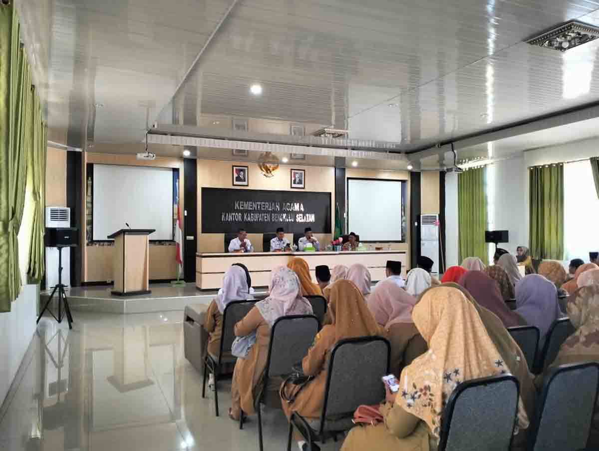 Kegiatan tersebut dilaksanakan di aula gedung Pusat Layanan Haji dan Umrah Terpadu (PLHUT), diikuti oleh pengawas, kepala madrasah, guru dan operator dari berbagai madrasah di Bengkulu Selatan.