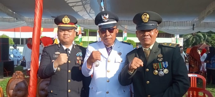 FOTO BERSAMA: Kades Selali berfoto dengan Kapolsek Pino Raya dan Babinsa -debi-radarselatan.bacakoran.co