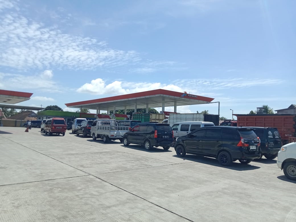 ANTREAN: Antrean kendaraan yang ingin mengisi BBM di SPBU Kutau-Debi-radarselatan.bacakoran.co