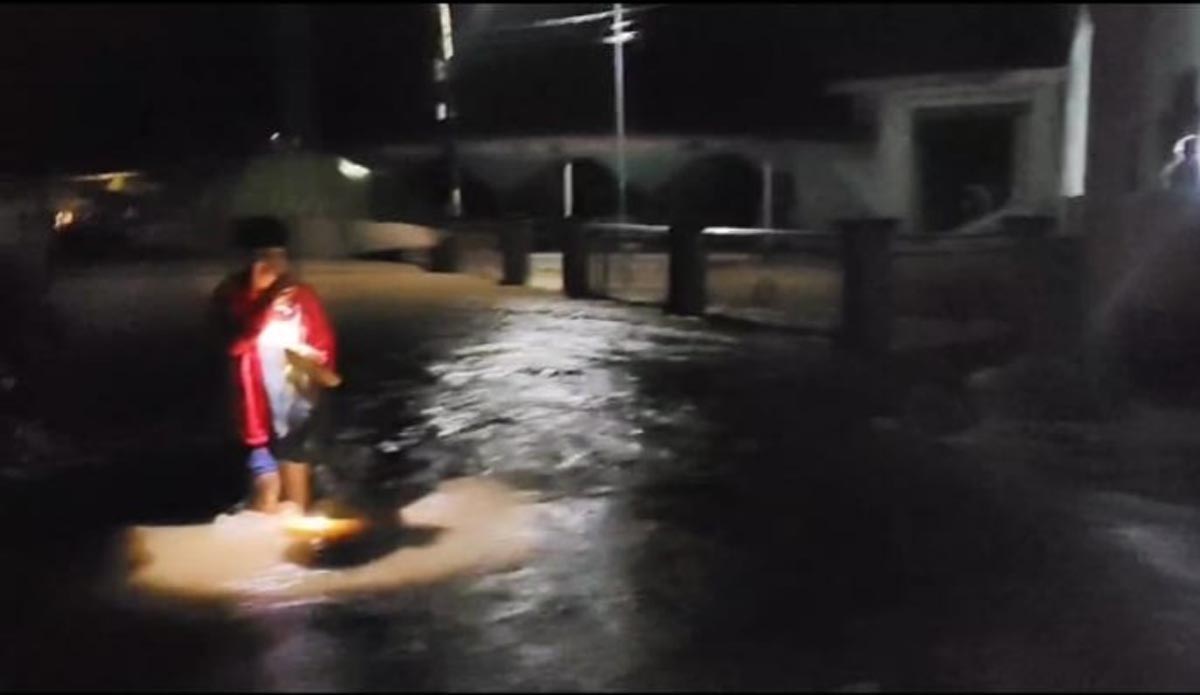 Hujan deras yang melanda sebagian wilayah Kabupaten Seluma pada Sabtu (18/10) mengakibatkan banjir, air menggenangi jalan raya dan pemukiman-Fauzan-radarselatan.bacakoran.co