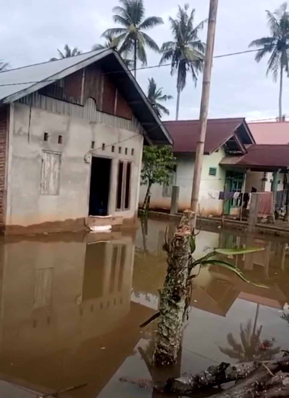 Menurut Mikardin, hujan deras yang mengguyur wilayah Desa Gunung Ayu dalam beberapa hari terakhir membuat aliran air tersumbat lantaran sampah yang menumpuk di saluran dan parit-parit desa.