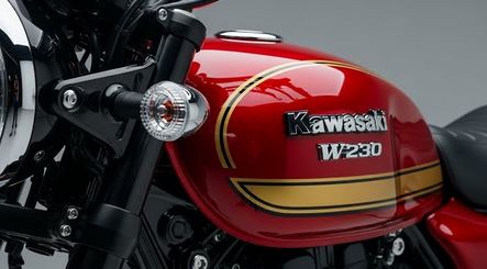 Secara visual, W230 ABS 2026 tampil menawan dengan tangki bahan bakar berbentuk tetesan air mata, jok panjang bergaya tuck and roll, serta roda jari-jari berukuran 18 inci di depan dan 17 inci di belakang.