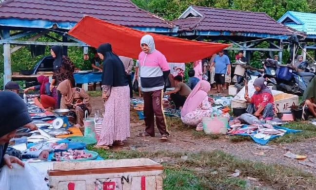 PASAR IKAN: Penjual ikan sedang bertransaksi dengan pembeli di salah satu pasar di Kabupaten Kaur-julianto-radarselatan.bacakoran.co