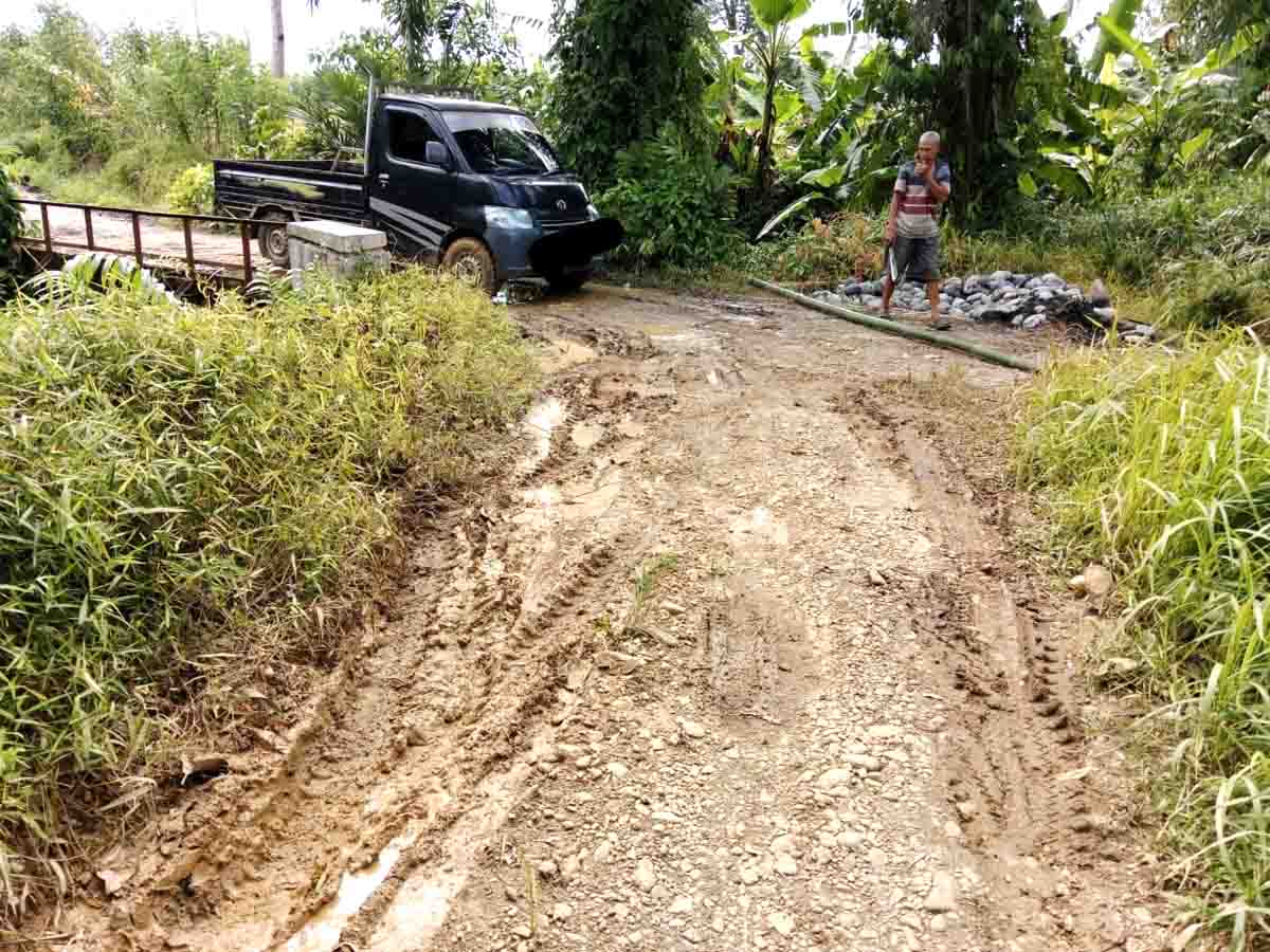 Jalan yang sudah puluhan tahun tidak diaspal tersebut berlumpur saat musim hujan. Tak ayal, petani semakin kesulitan mengeluarkan hasil panen maupun menjangkau sawah mereka.