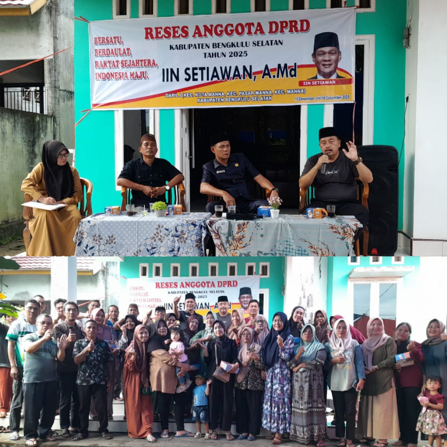 "Reses ini menjadi sarana kami untuk mendengar langsung apa yang dirasakan masyarakat. Semua aspirasi yang disampaikan, baik terkait hibah lahan, infrastruktur, maupun persoalan ketertiban, akan kami catat dan diperjuangkan sesuai mekanisme yang ada di DPRD,” kata Iin Setiawan.