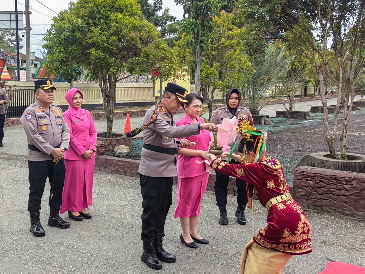 Prosesi penyambutan Kapolres baru Kaur dengan sambutan sekapur sirih dan tari daerah. Kapolres Kaur mengapresiasi kinerja Kapolres sebelumnya dan berjanji untuk membawa Polres Kaur lebih maju.